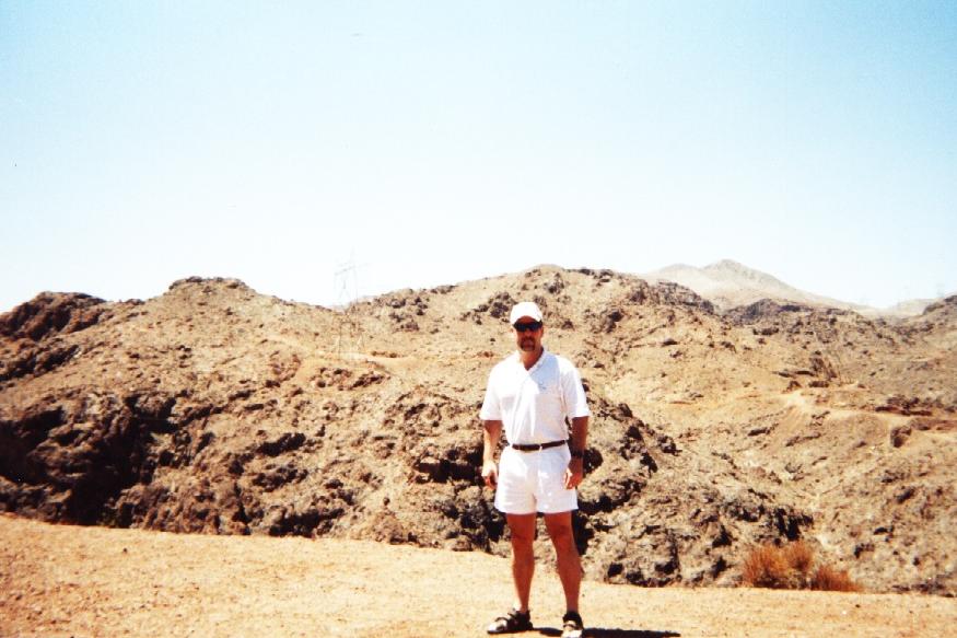 | Coming up to the Dam. It was 110 degrees. Notice the desolate landscape. |