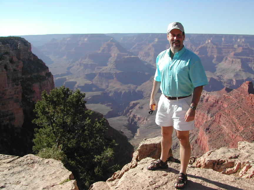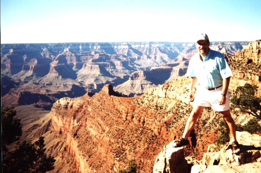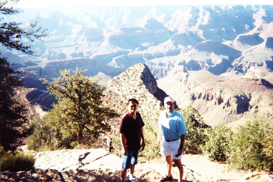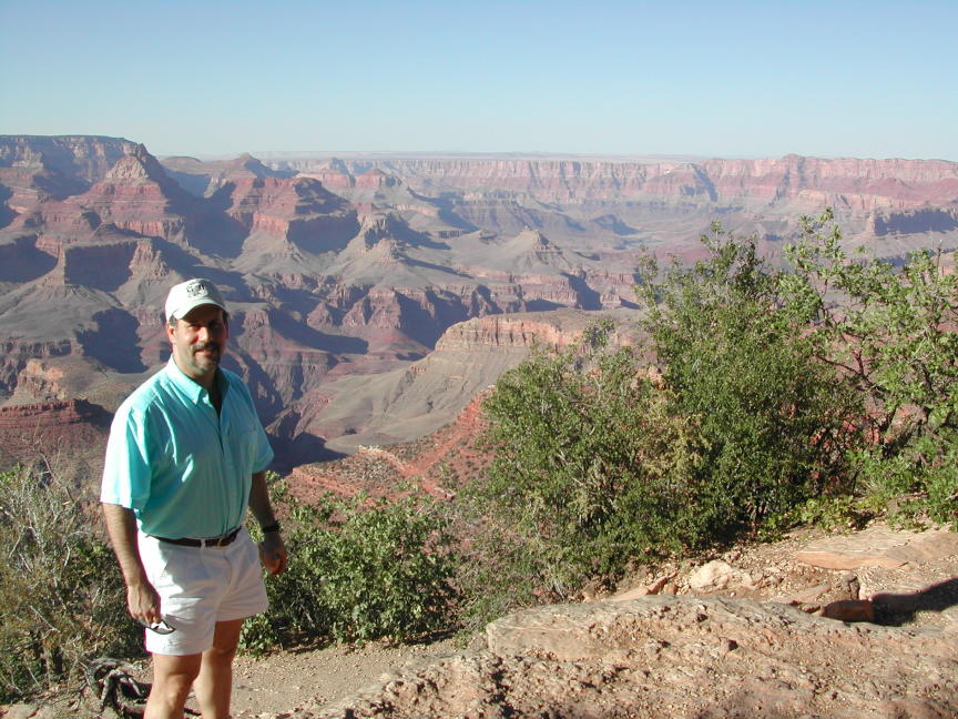 | We stopped at all the observation points. My rule for picture taking is always have someone in the picture and in the case of Grand Canyon, it helps to give a perspective on size, depth and distance. |