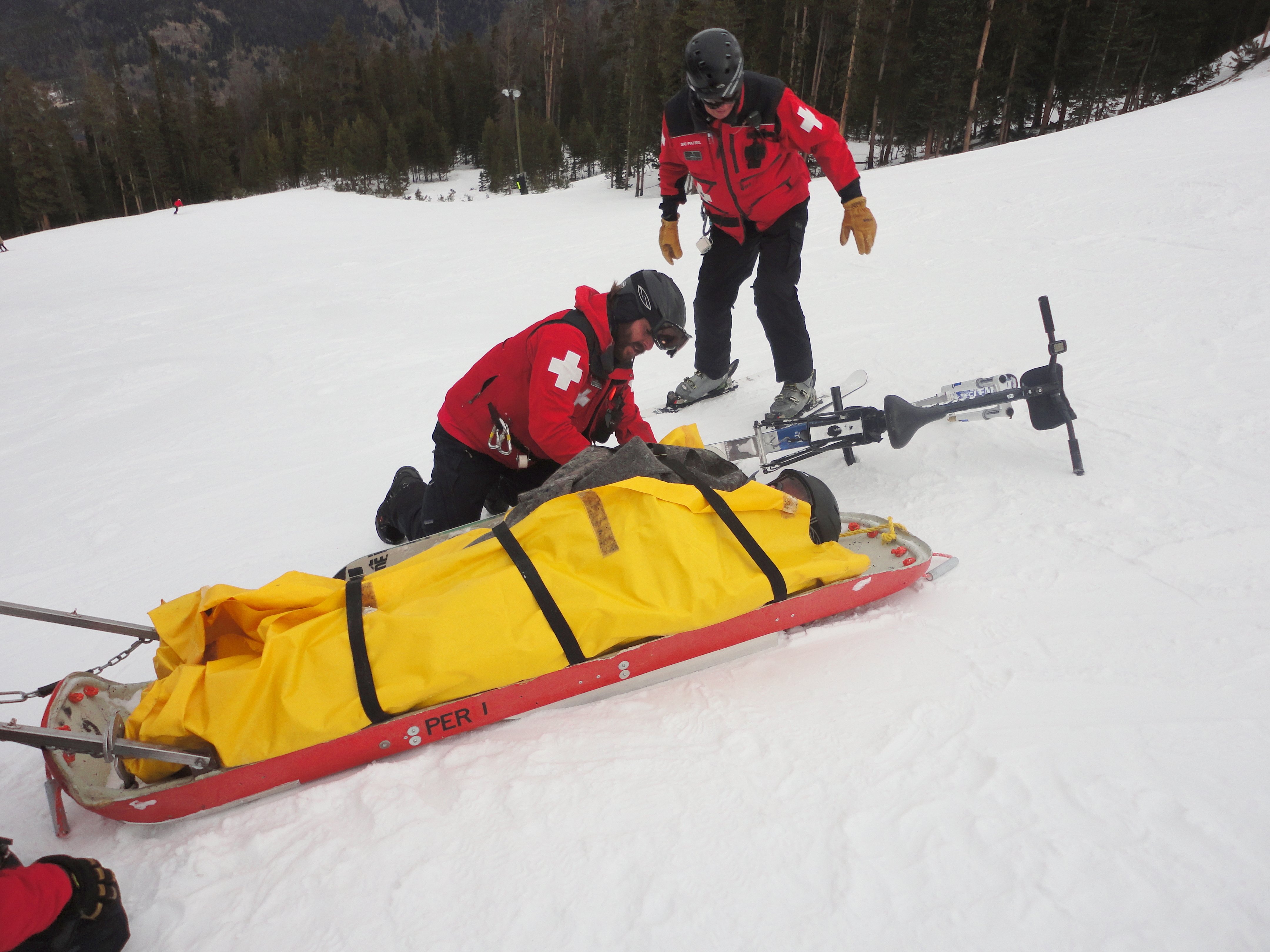 | 2 | Jessie bundled up in a cocoon sled after his injury before being taken down to the onsite hospital. |